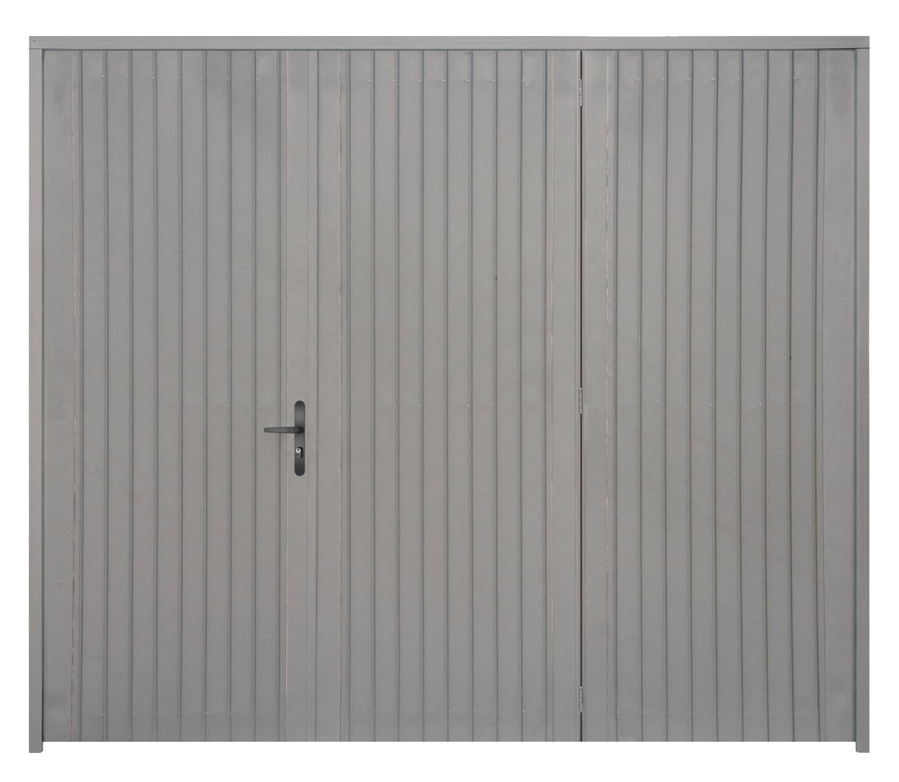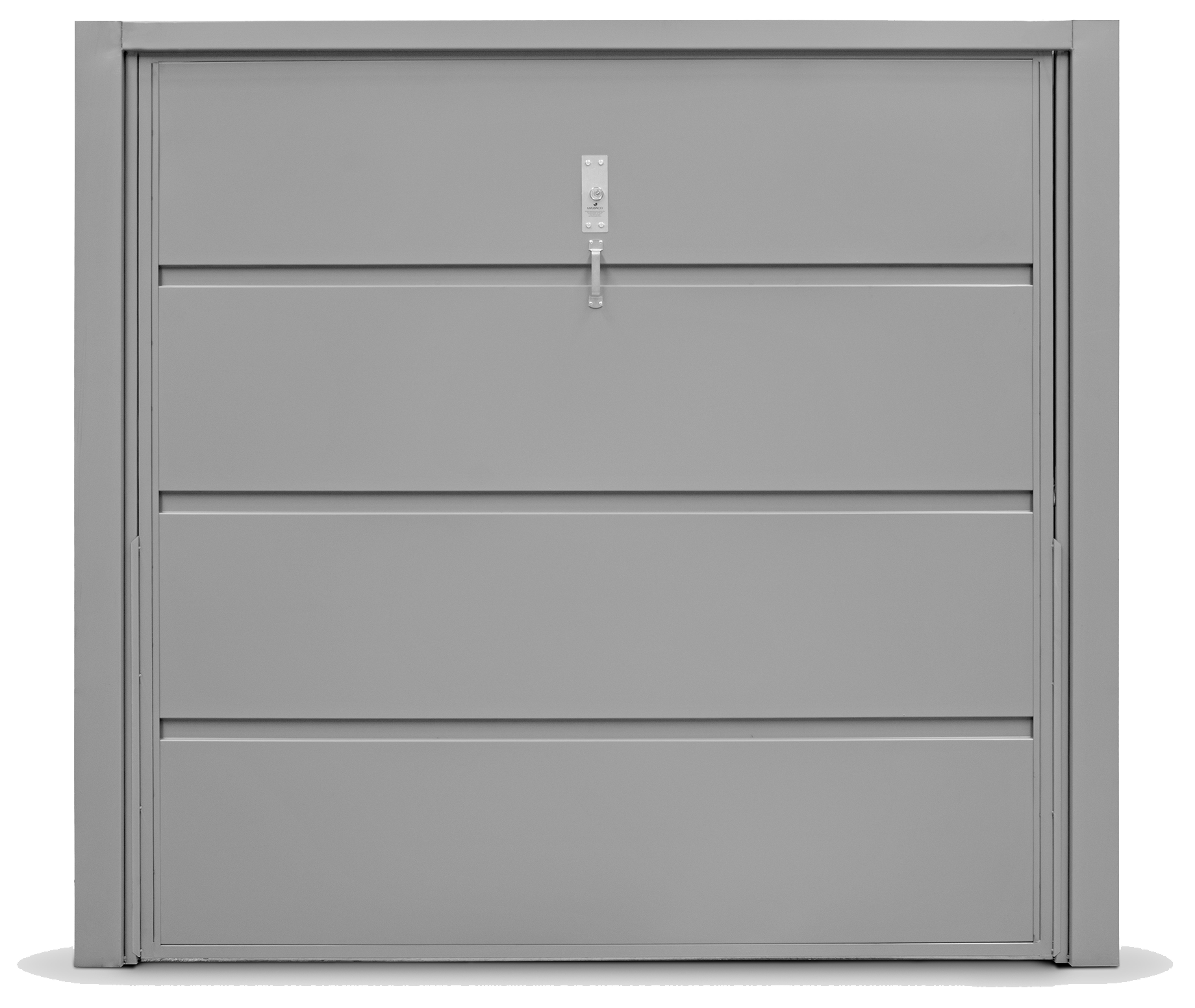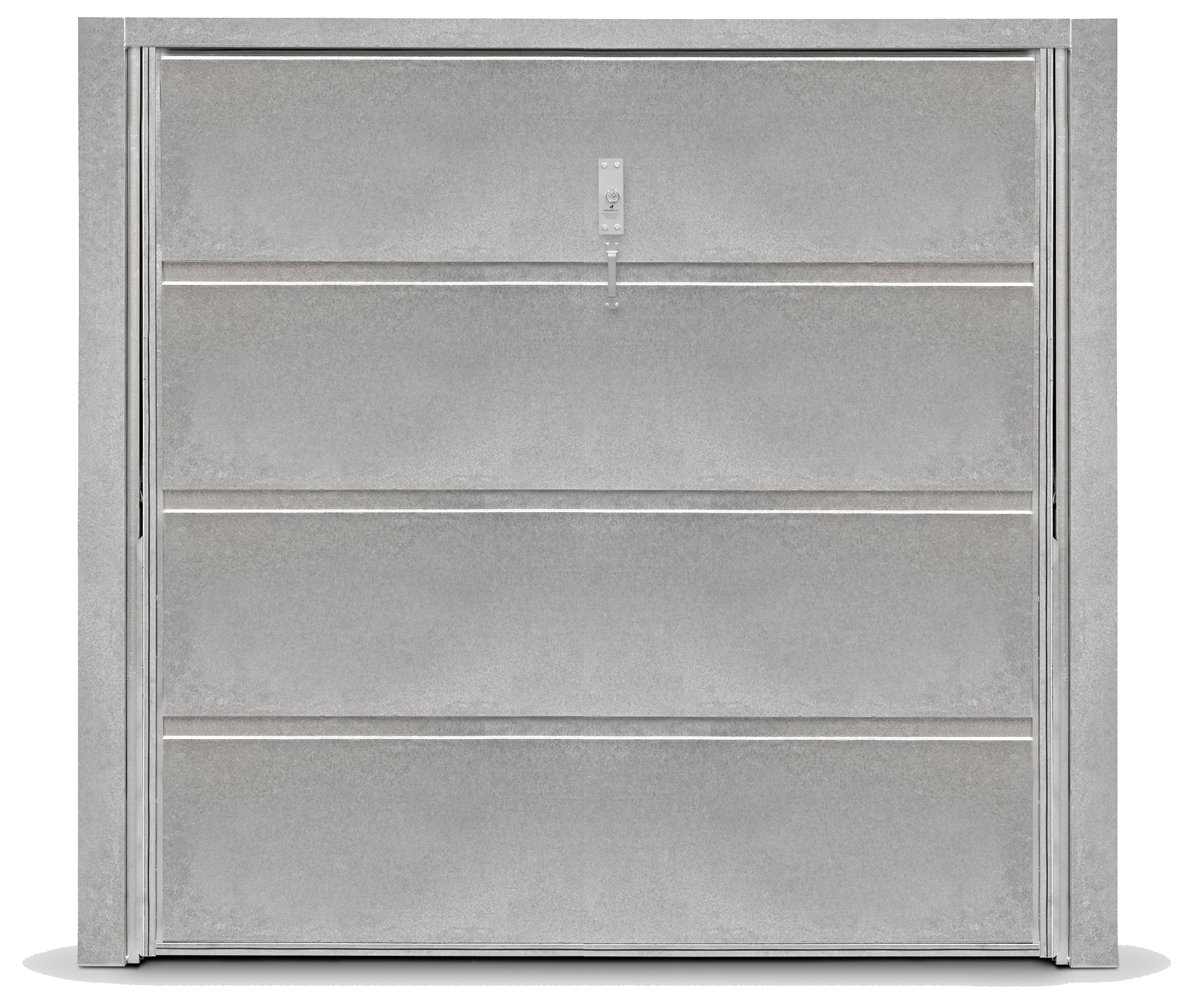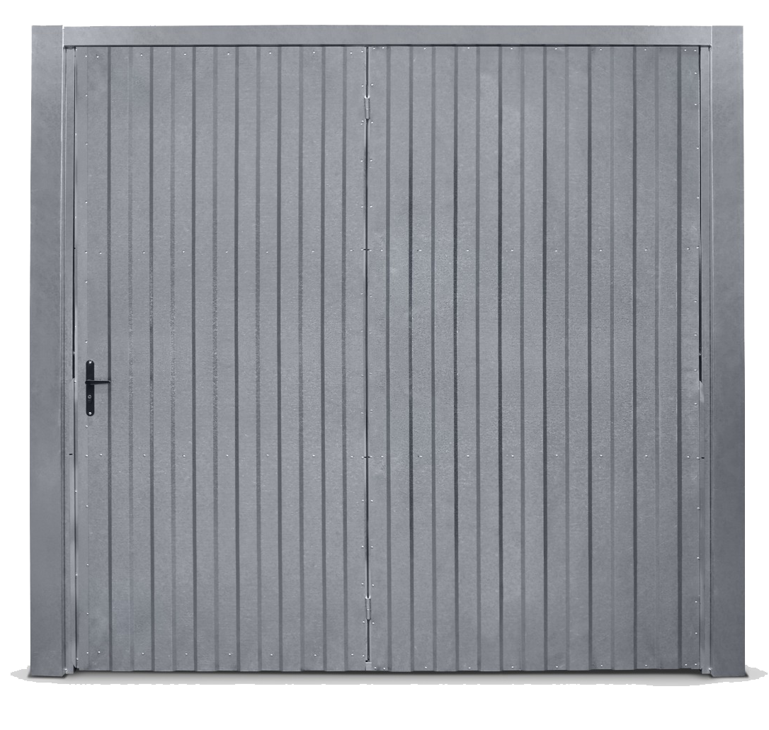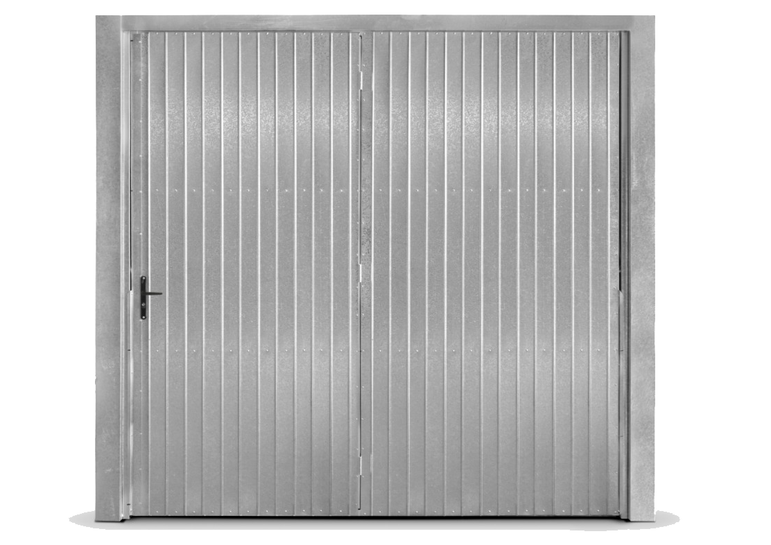 Portão Contrapeso em Chapa Galvanizada 22 (0,80 mm), sem/com Porta Auxiliar, com Negativos e com/sem Fechadura Central.
