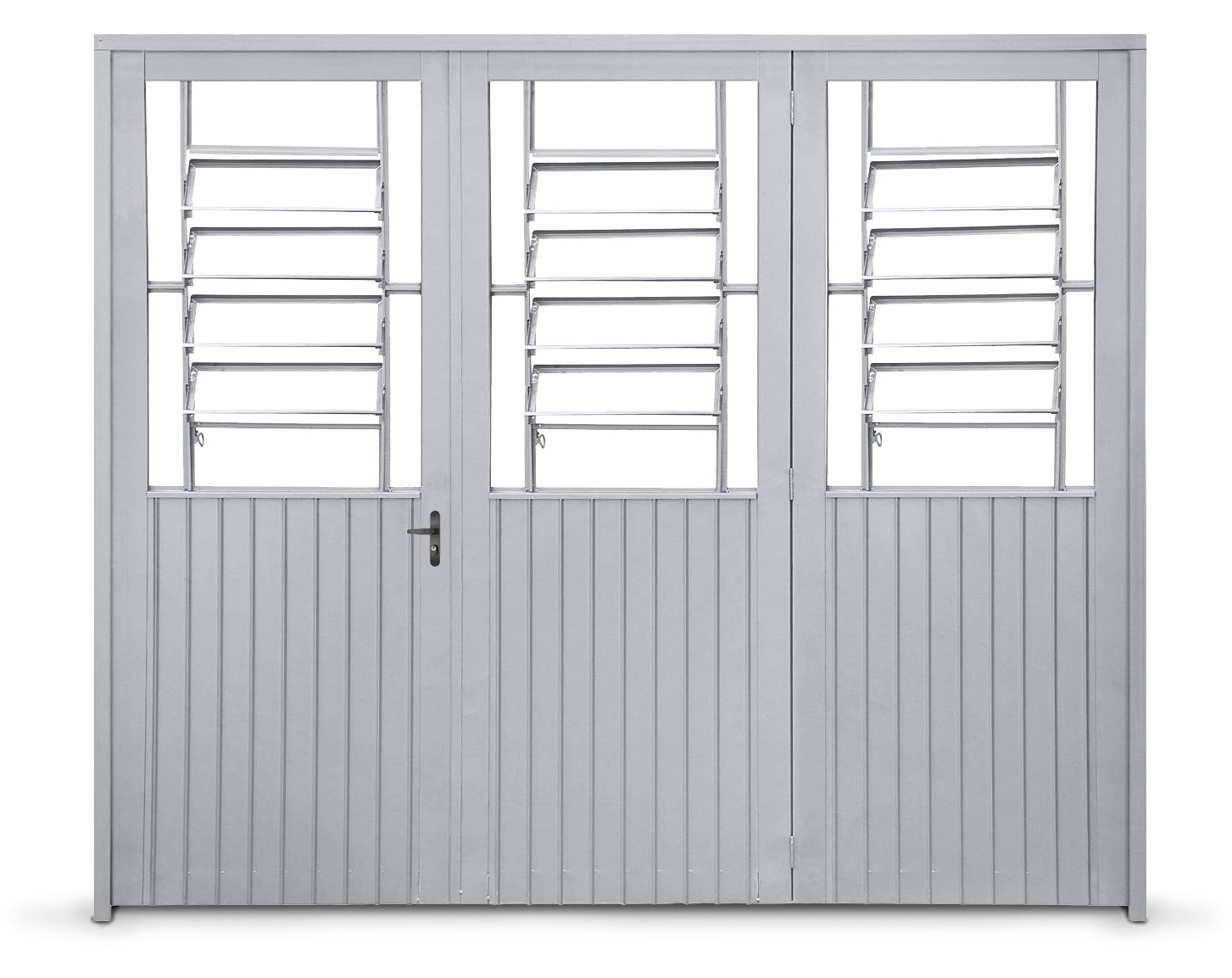 Portão 1/2 Vigia Misto (Basculante no Centro e Vidro Fixo nas Extremidades) em Chapa Pintada 26 (0,40 mm) com Fechadura Cilíndrica.